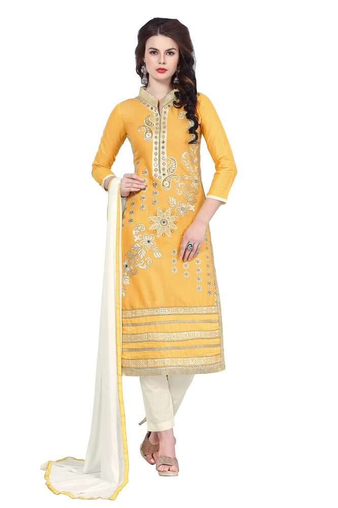 Fabric-Cotton Work-Embroidered Party Wear Suit Top:2.20 Mtr,Bottom:2.20Mtr,Dupatta:2Mtr